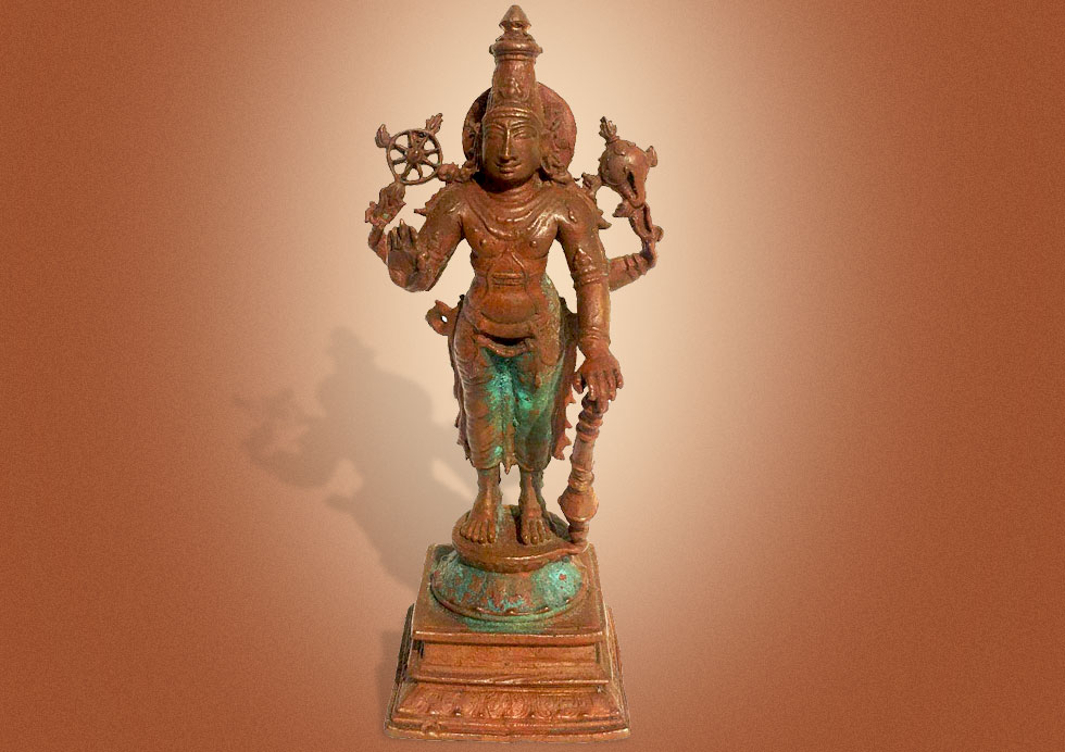 Vishnu is standing in the Sampadasthanaka pose in the standing or Chaturbhuja Vishnu statue. Here, both his legs are in a joined position. Vishnu looks composed and active at the same time. The statue represents him as an immovable divine force with eternal presence in all cosmos-related matters.