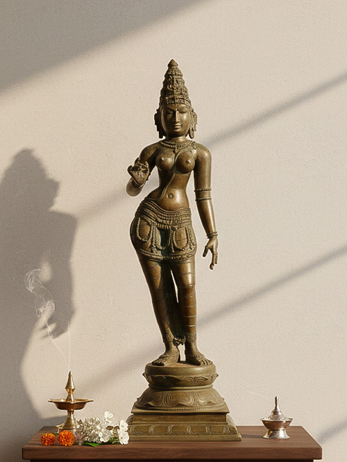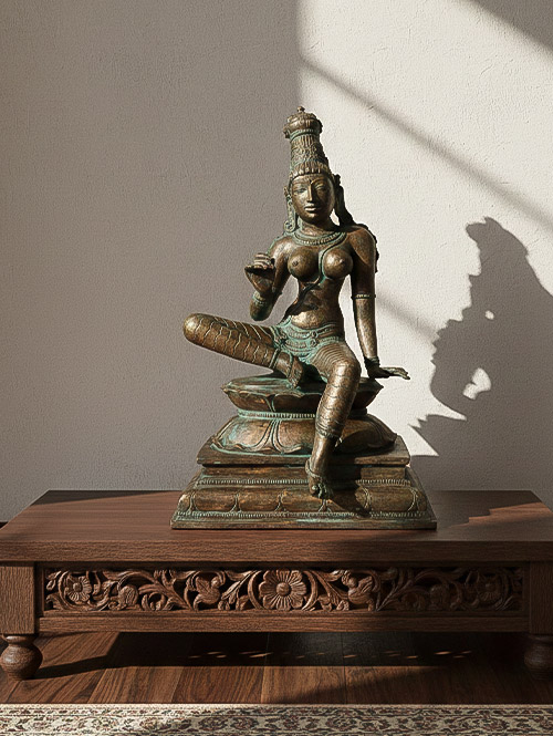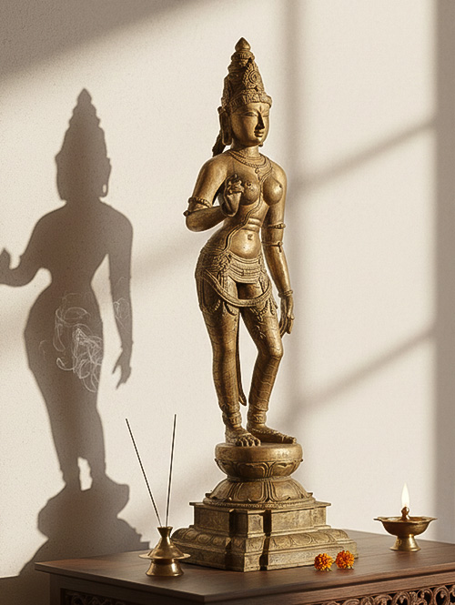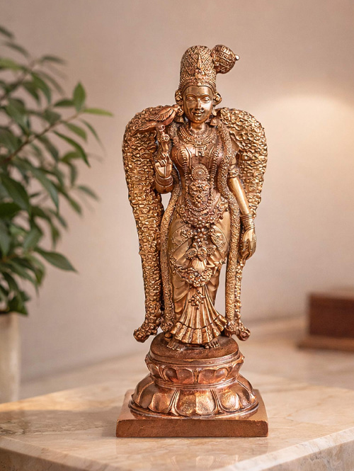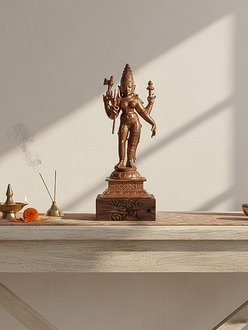 The Meenakshi Devi Temple is one of the most renowned temples in India. Lord Sundareswarar and Goddess Meenakshi are worshipped in this temple. This temple has stunning architecture and a divine atmosphere. This temple represents culture and devotion. Many devotees believe that visiting this temple removes all negative energy and brings blessings. The artist shows Meenakshi Devi in green skin that symbolizes prosperity and fertility. She holds a parrot in her right hand, which signifies the parrot whispering into her right ear about the essence of righteous rule, dharma, and truth. Her appearance is both powerful and loving. Many people keep Meenakshi Devi images at their homes to worship her. Explore Cottage9 for Meenakshi Devi idol.